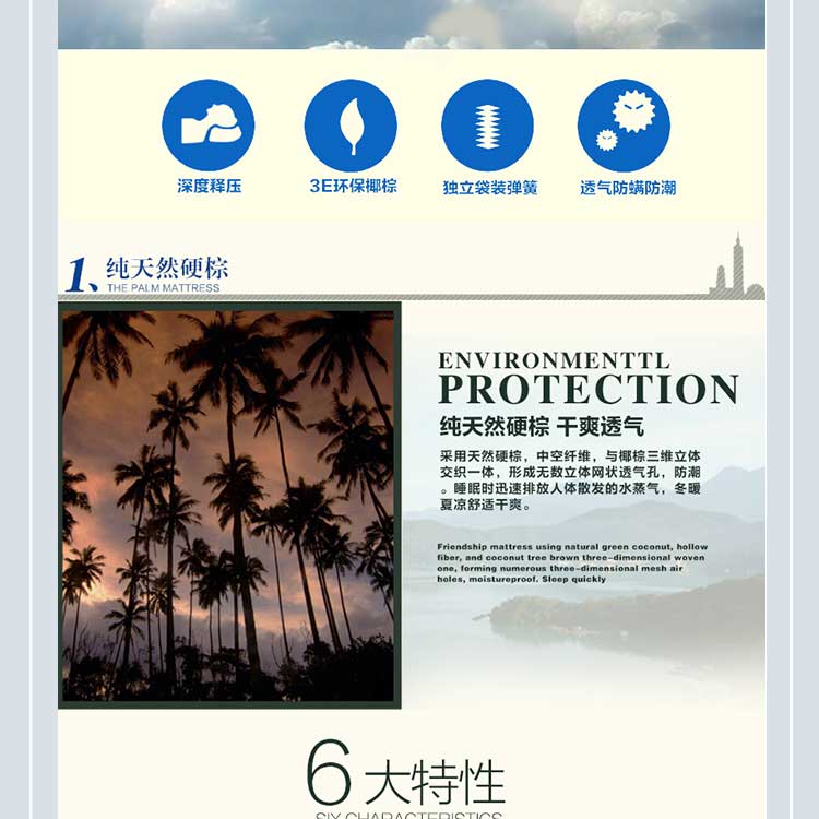 台湾同愿软硬两面环保棕床垫天然环保弹簧床垫酒店家用床垫定制 T6033
